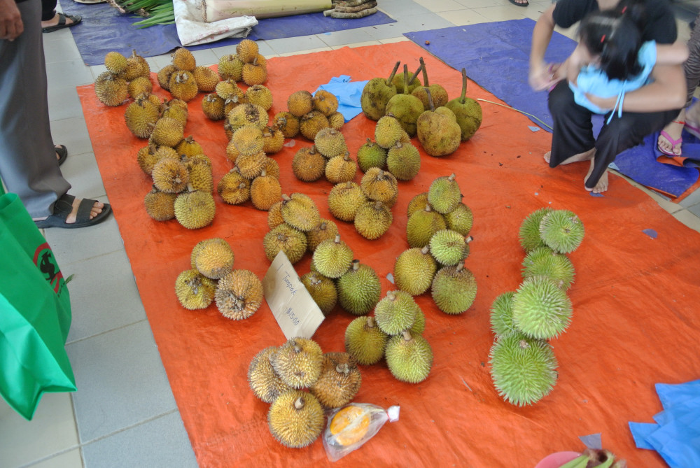 People are busy buying and selling durian, each cost around $2-$4 which is quite cheap |